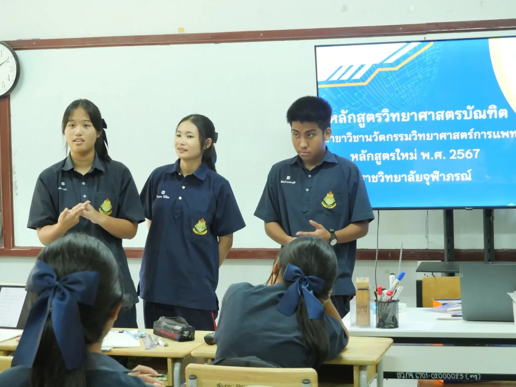 วันที่ 19 กันยายน พ.ศ. 2568 คณะวิทยาศาสตร์ ราชวิทยาลัยจุฬาภรณ์ ได้จัดกิจกรรมประชาสัมพันธ์หลักสูตรวิทยาศาสตรบัณฑิต สาขาวิชานวัตกรรมวิทยาศาสตร์การแพทย์ ณ “โรงเรียนเฉลิมพระเกียรติสมเด็จพระศรีนครินทร์ กาญจนบุรี”