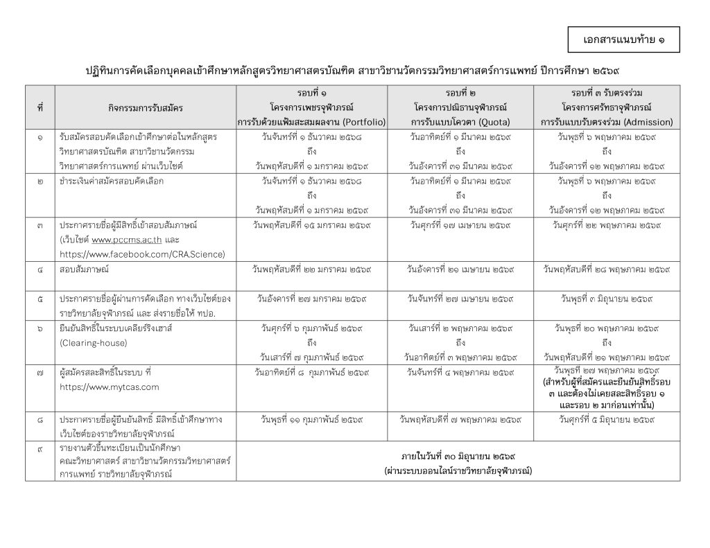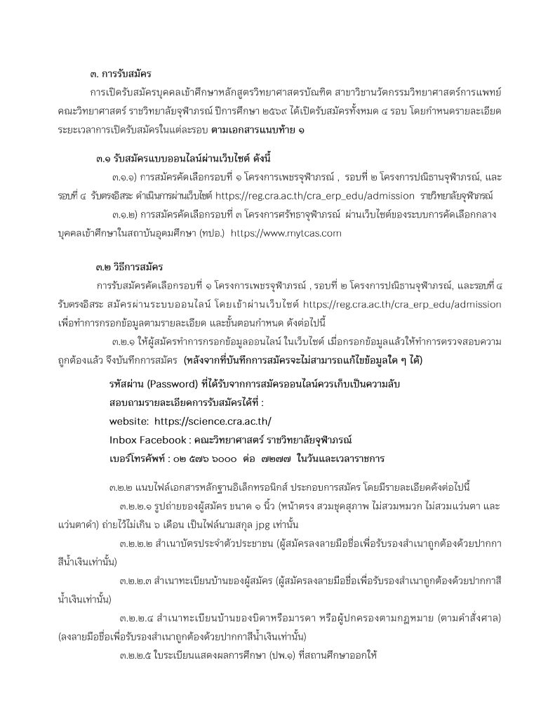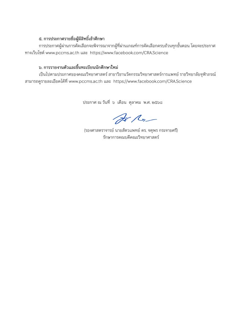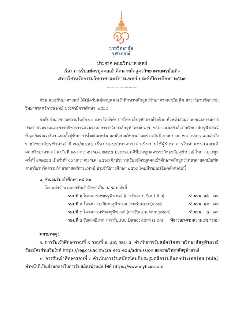 ประกาศคณะวิทยาศาสตร์ เรื่อง การรับสมัครบุคคลเข้าศึกษาหลักสูตรวิทยาศาสตรบัณฑิต สาขาวิชานวัตกรรมวิทยาศาสตร์การแพทย์ ประจำปีการศึกษา 2569